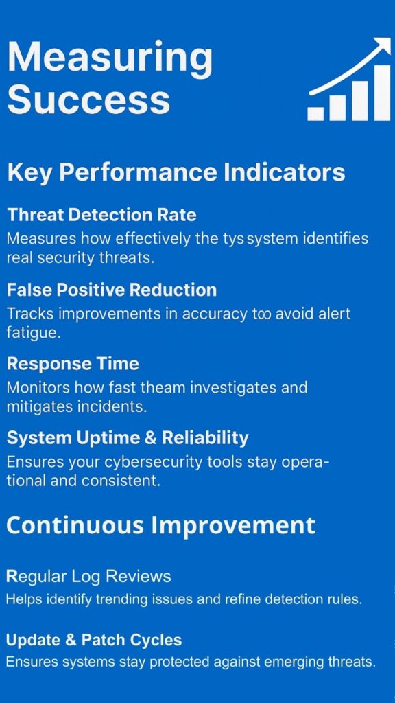 Regular reporting keeps security visible to management. Simple reports showing trends in incidents, detection times, and compliance help demonstrate the value of your controls. They also identify areas needing improvement.